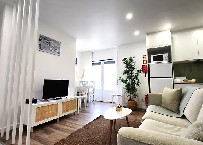 Apartament o powierzchni 80 m² jest zaledwie 5 min spacerem od centrum miasta. Kościół NMP z Nazaré leży w odległości 25-minutowego spaceru.
